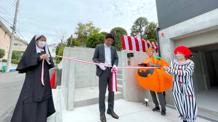 10月31日に引渡し完了しました。一人お子さんの発熱でお休みになったので、私が急遽パンプキンに仮装! テープカットの瞬間!記念品の贈呈・・・