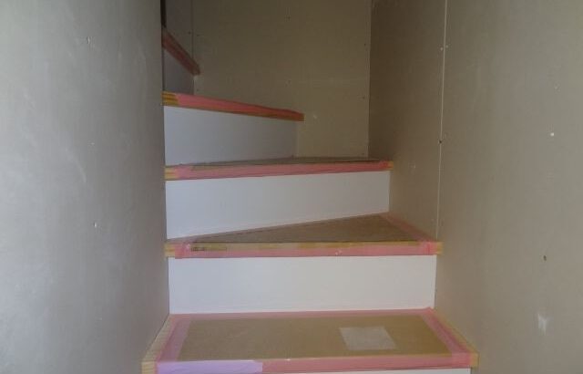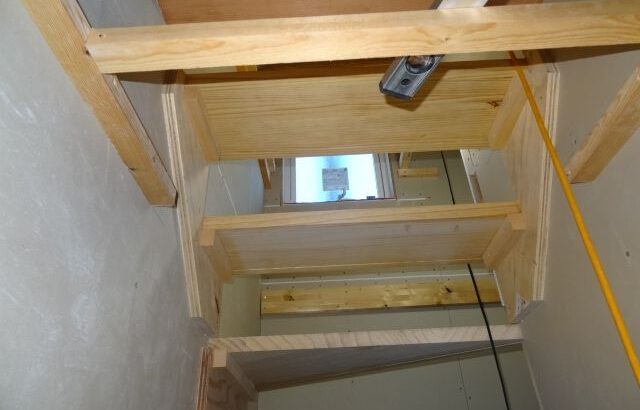 階段取付工事中!2階から3階に行く階段の下から撮影。