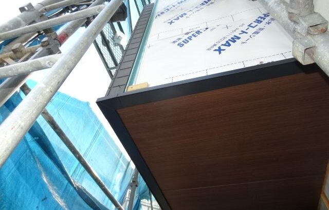サイデング貼り工事進行中。少しずつ進んでおります。