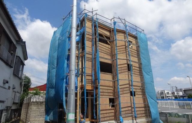 外部構造用合板を貼っています。