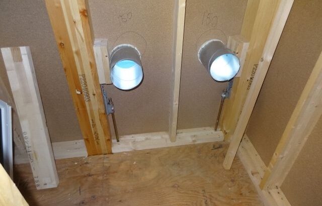 Z空調の給排気口のスリーブ入れが完了しました。ココから吸気されて、排気される夏涼しく冬温かい空調機につながるのだ!!