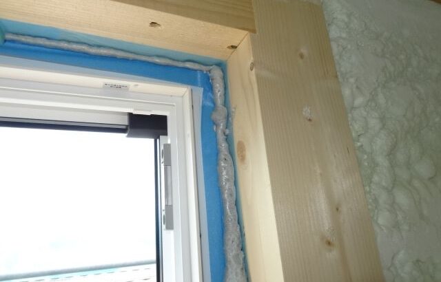 窓回りのまぐさや方立とサッシの隙間の気密性能を上げるためにウレタンを注入します。
