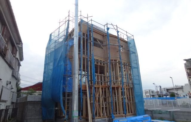 構造用合板取付始めました。