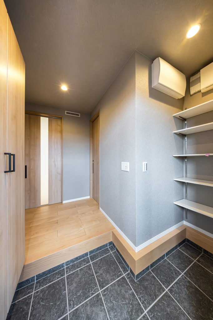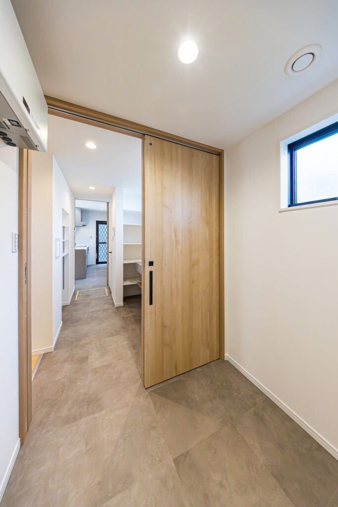 玄関から洗面・キッチン・バスルームの水まわりまでスムーズに行き来できる